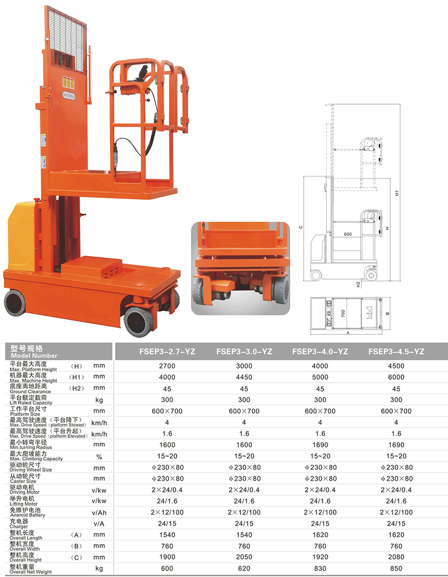 液壓轉向全電動高空取料機
